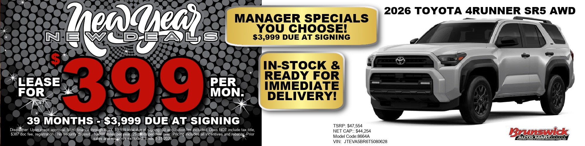 2026 Toyota 4Runner SR5 Lease Special: $399/month